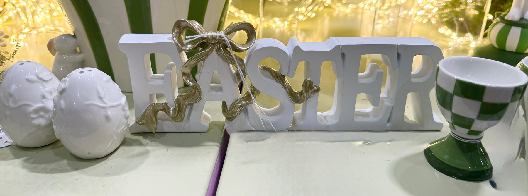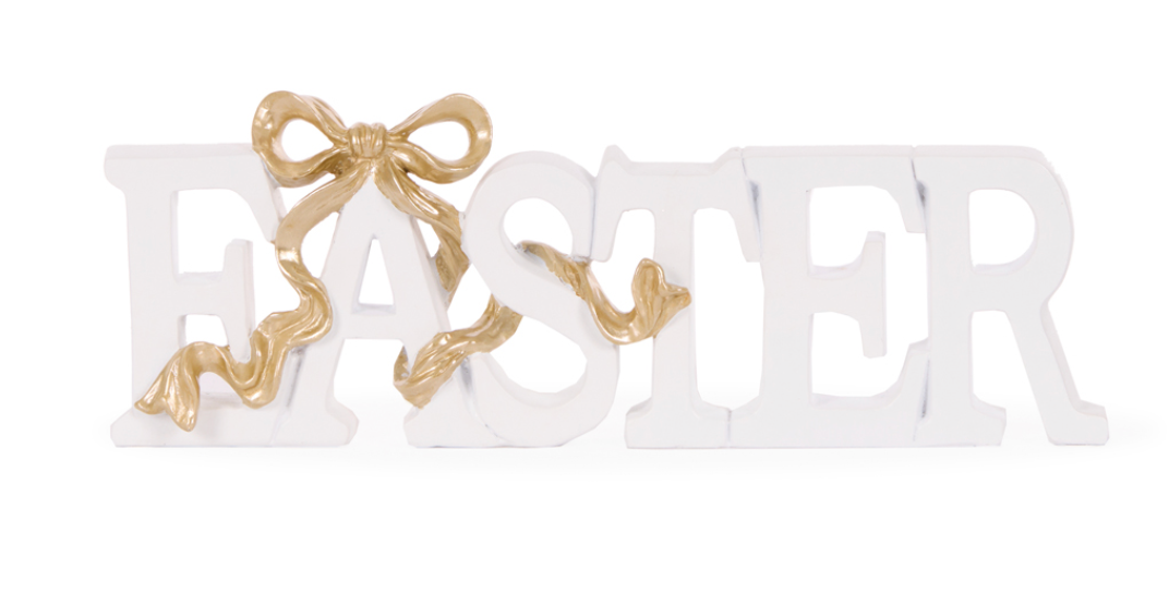 Elevate your Easter display with this refined decorative sign, featuring sophisticated white and gold tones that complement any seasonal arrangement. Measuring 25 x 3.7 x 8.8 cm, its elegant proportions make it ideal for mantels, shelves, or tabletop styling. The gilded accents and delicate bow detail bring a touch of luxury to your festive décor, perfect for creating a curated, upscale aesthetic throughout your home this Easter and many more.