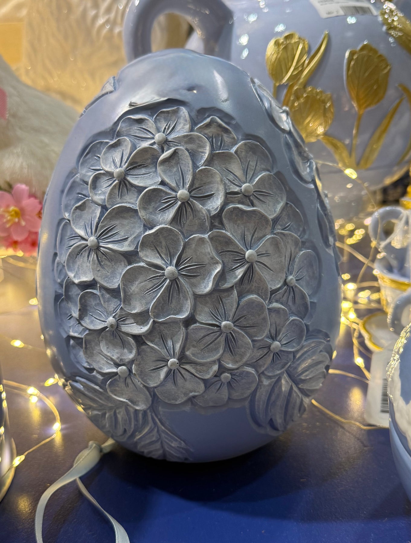 Elevate your Easter display with this stunning resin hydrangea egg in rich blue tones. Standing 20cm tall with a refined 15x15cm base, it brings sophisticated seasonal charm to any space. Perfect for layering with your existing blue collection, this luxe piece combines modern minimalism with festive elegance—a timeless accent that transforms your home into a curated sanctuary.