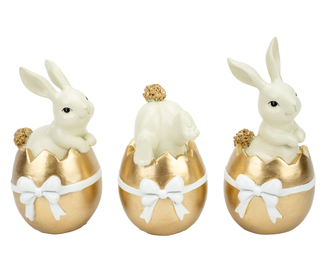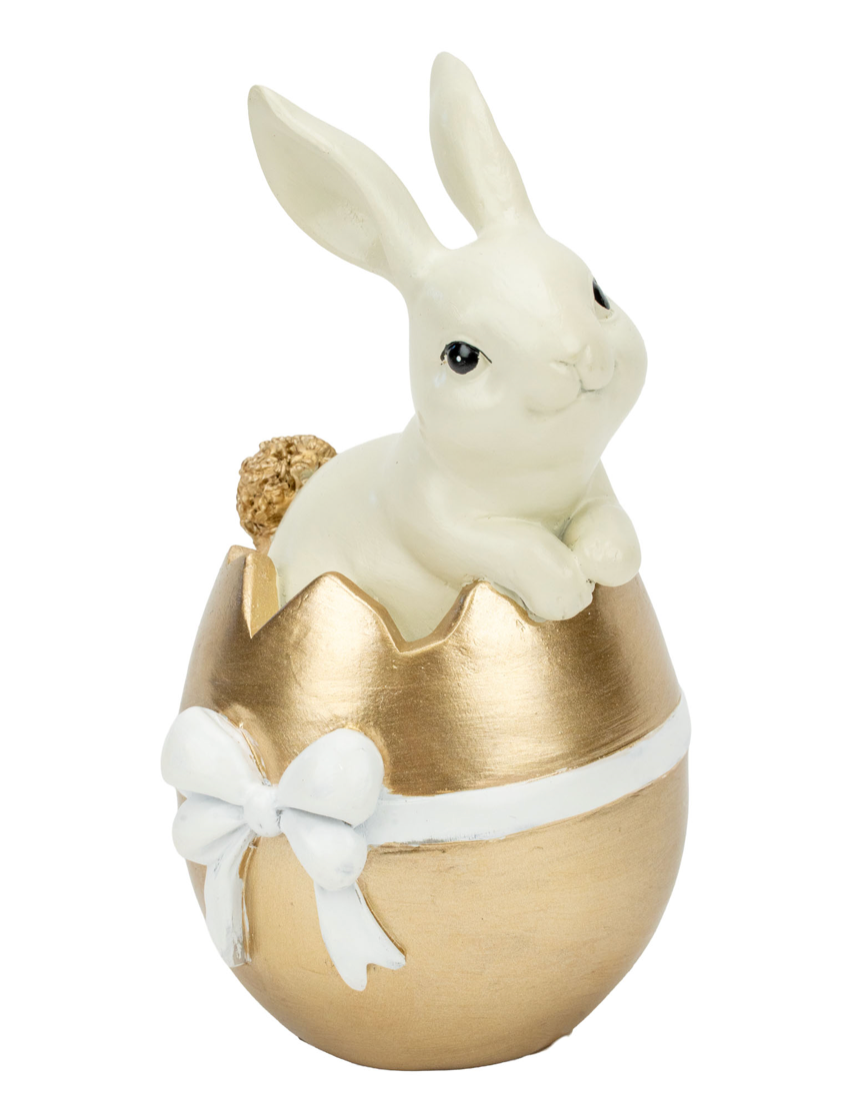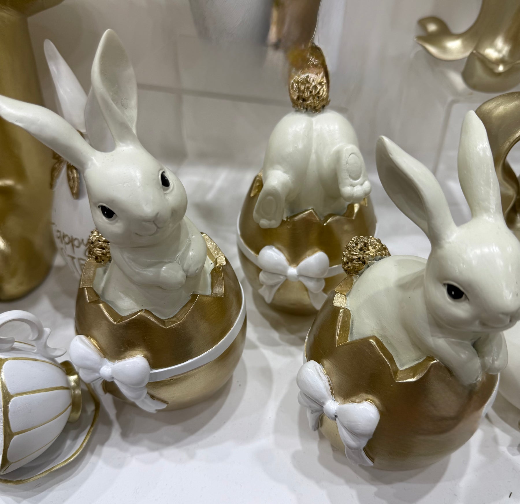 Hop into Easter magic with these charming resin bunnies nestled in eggs. Each piece measures 8.5 x 9.20 x 18.5cm and features a delightful gold and white palette that brings warmth to any seasonal display. Perfect for tabletops, shelves, or gift baskets, these cute Easter decorations capture the joy of the season with playful character. Assorted designs ensure every piece is a delightful surprise—ideal for collectors and festive decorators alike.