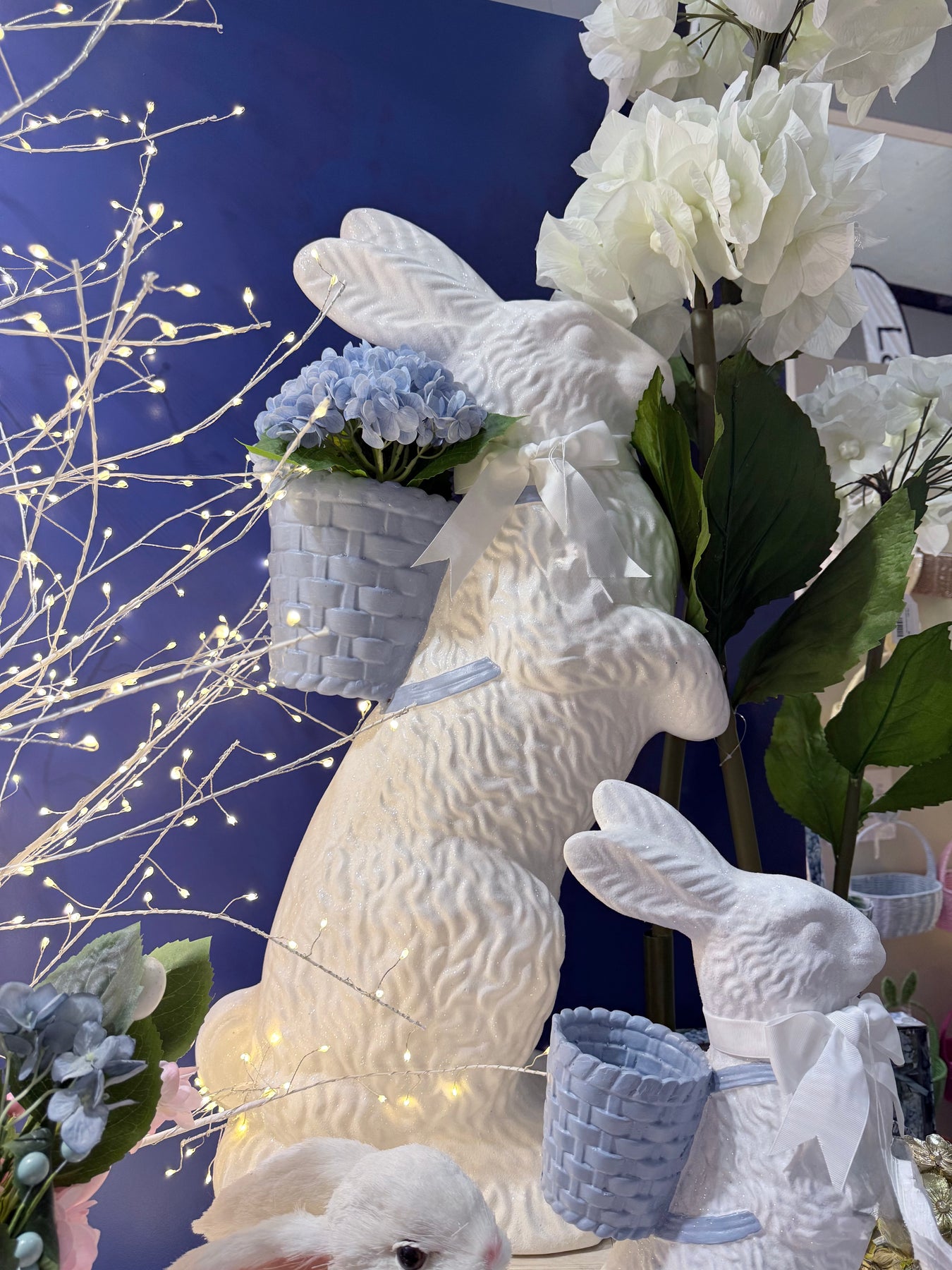 Hop into Easter magic with this delightful 88.5cm white rabbit, crafted from premium resin to capture every intricate detail. Standing at an impressive 48 X 26 X 88cm, —perfect for creating an Instagram-worthy Easter display. Whether you're styling a shop window or celebrating the season at home, this charming bunny with its accompanying blue basket brings warmth, whimsy, and that coveted luxe touch to any space. An instant conversation starter for Easter enthusiasts and collectors alike.