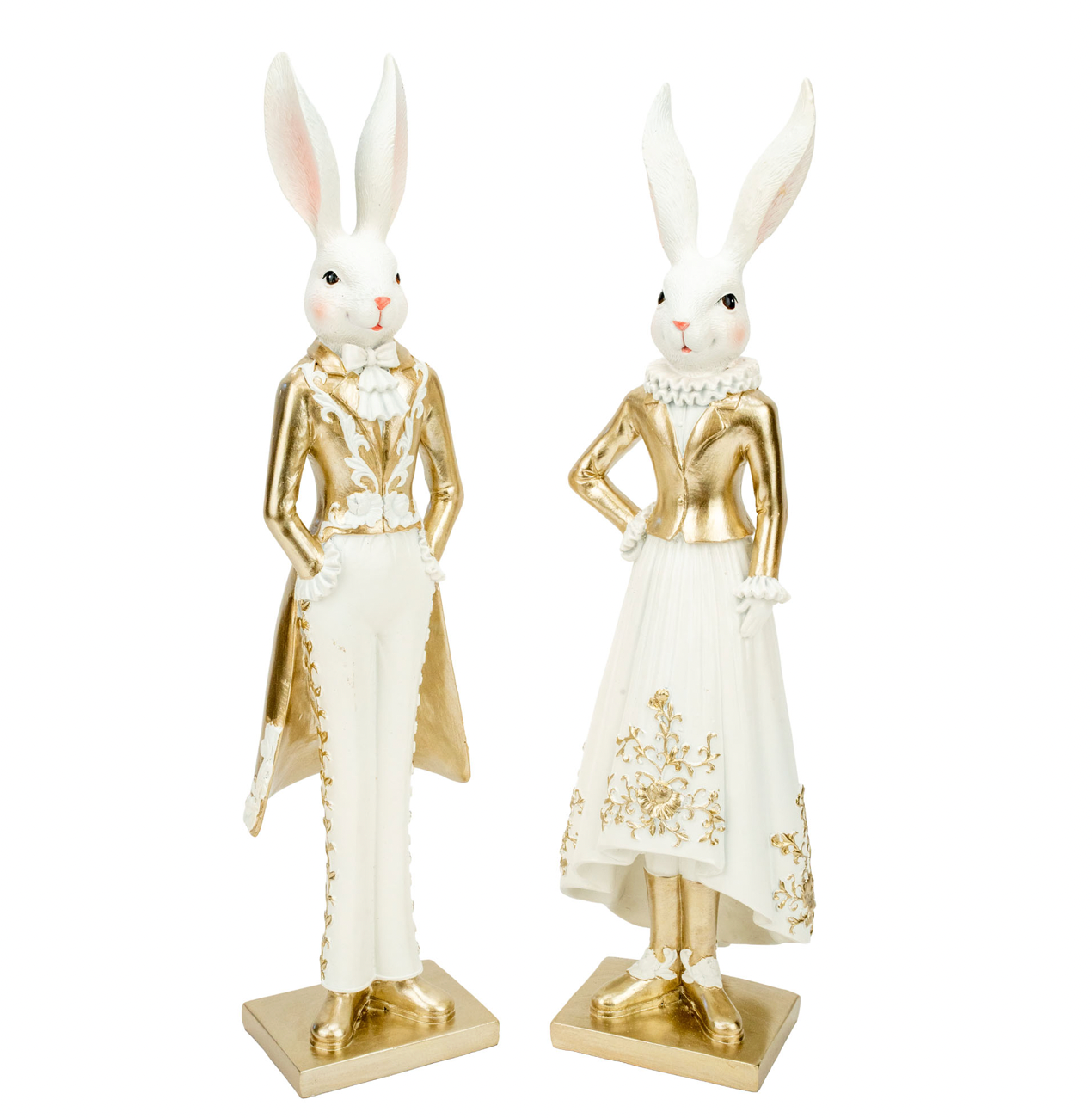 Meet Mr and Mrs Rabbit—a sophisticated pair of 40cm decorative pieces finished in crisp white with gleaming gold accents. Display them together as a charming set or showcase each individually. Perfect for elevating your Easter styling with understated luxury and refined detail.