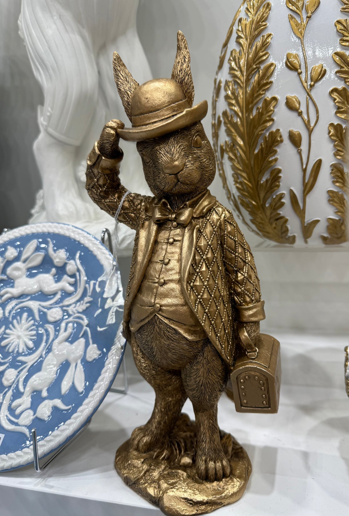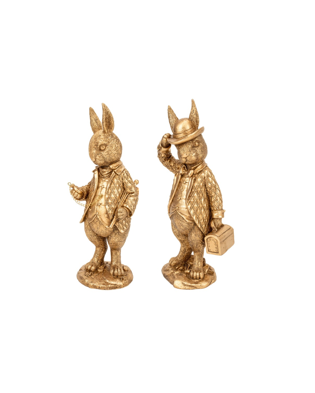 Add a touch of whimsy to your Easter decor with the Gold Wise Bunnies. Made of durable resin, these charming figures offer delightful accents for your celebrations. Choose to buy them separately or as a set. Each bunny measures 29cm, bringing a cheerful presence to any space.