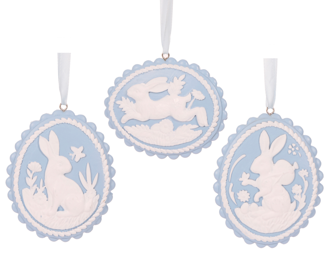 Bring understated elegance to your Easter display with this refined set of three resin ornaments. Each piece features a sophisticated blue and white palette with a delightful bunny that complements modern minimalist interiors. Crafted from durable resin, these delicate decorative accents measure 7.3 x 1.2 x 9.2 cm—perfectly scaled for tabletop arrangements, mantelpieces, or hanging displays. The assorted designs add subtle visual interest without overwhelming your seasonal décor scheme. An ideal choice for those seeking premium Easter embellishments with timeless appeal.