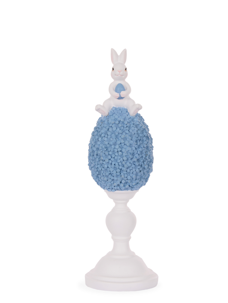Beautiful fresh looking blue and white Easter egg finials to hi- lite your Easter display. Each has its own unique style that compliments each other. These are sold separately but look awesome grouped together. Made from quality resin