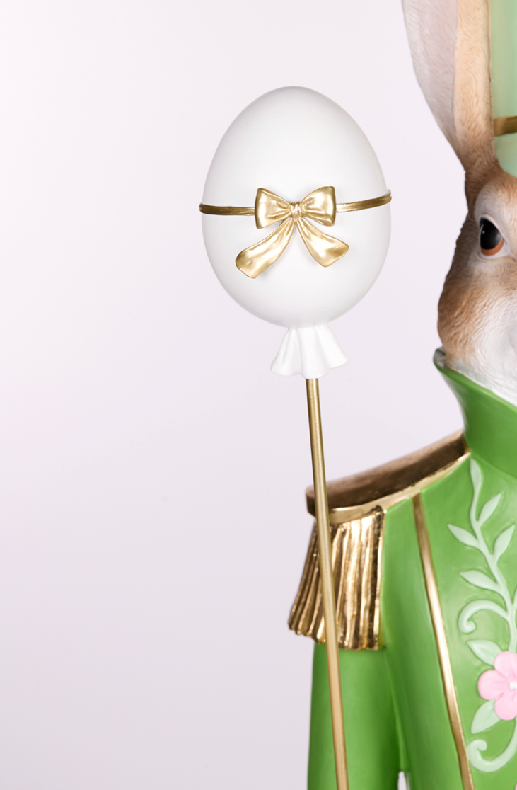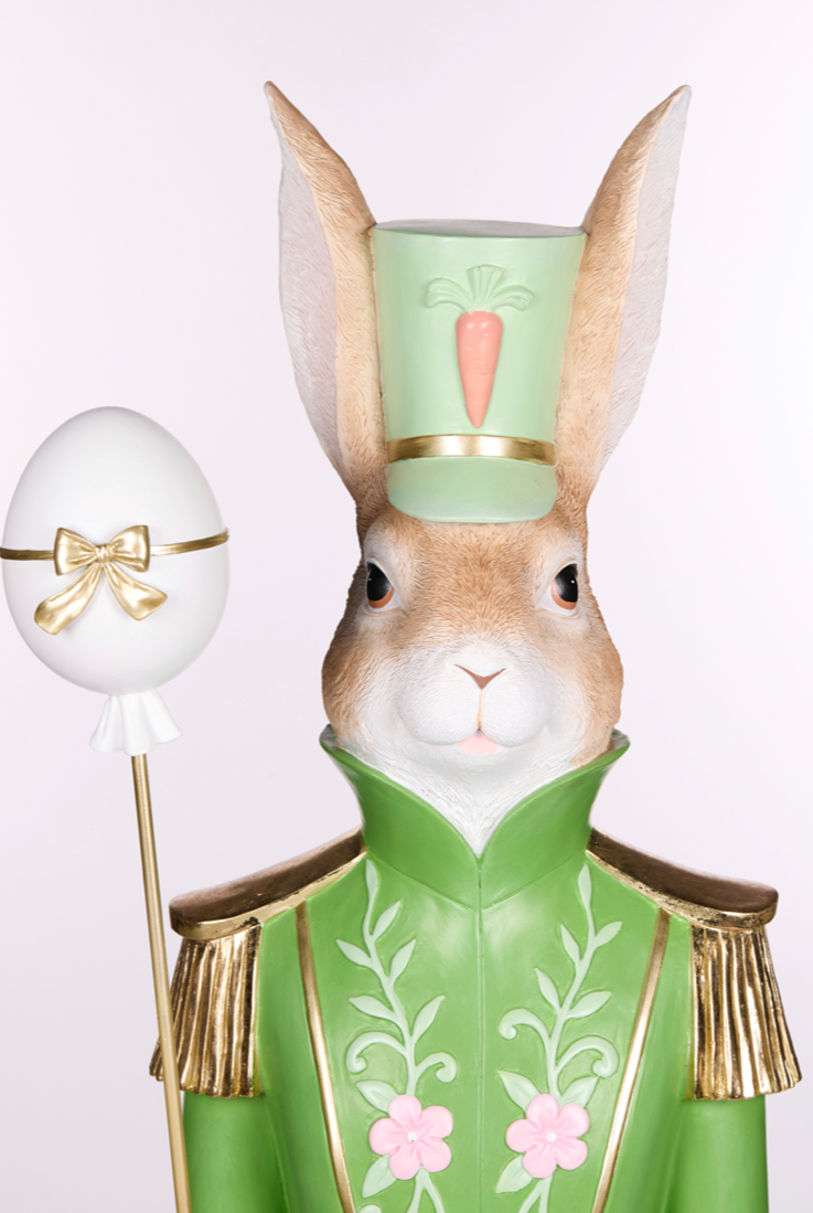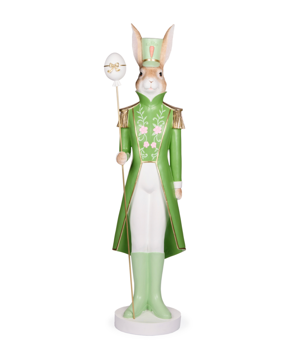 Elevate your Easter display with this striking Regal Nutcracker Bunny, a sophisticated statement piece crafted in premium resin. Standing at 127 cm tall, this commanding figure showcases an exquisite palette of white, green and gold detailing that brings timeless elegance to your seasonal décor. The ornate staff and refined proportions create a luxe focal point for entryways, or festive vignettes. Perfect for collectors and those seeking to infuse their home or workplace with refined holiday charm.