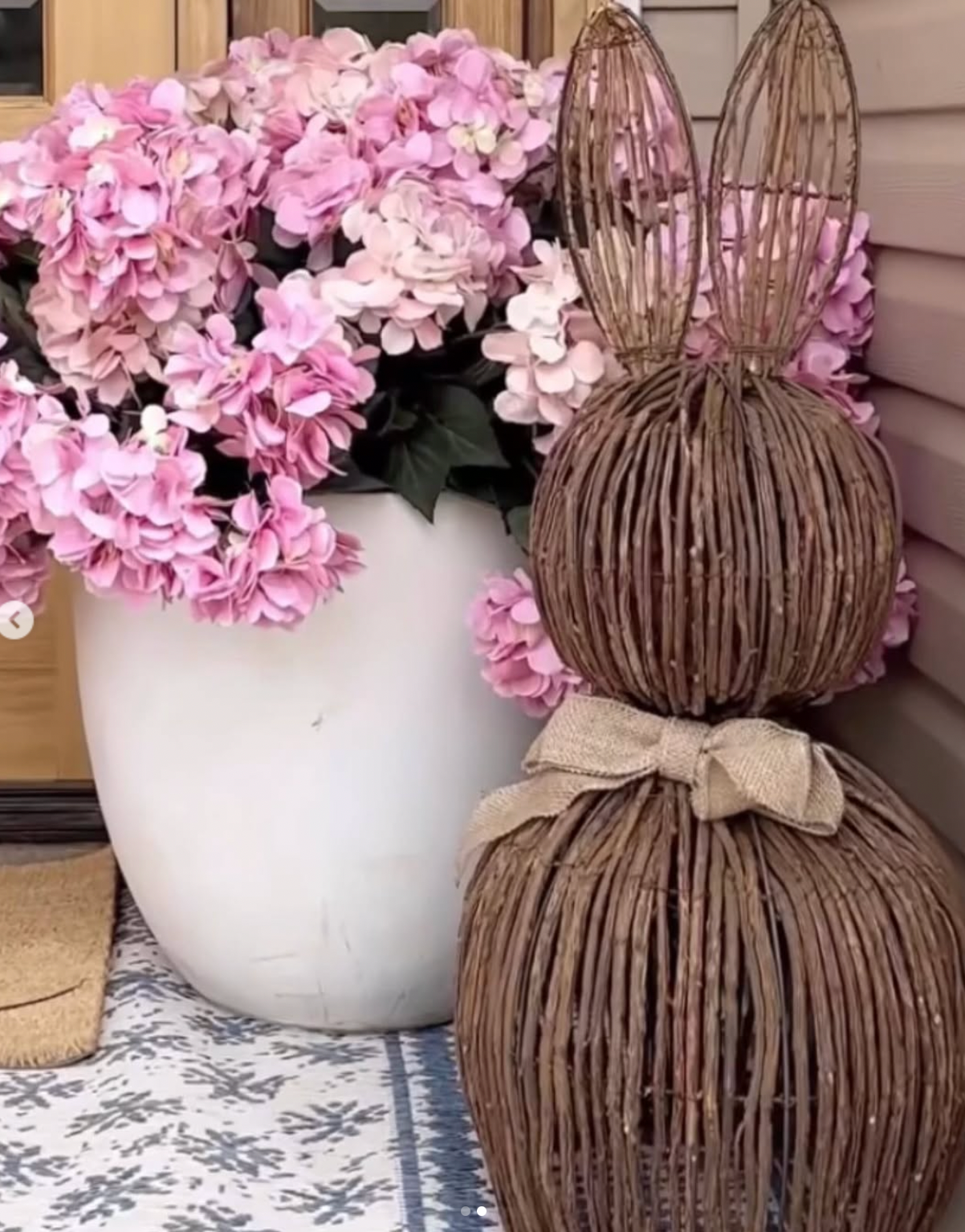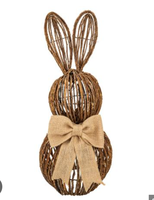 Bring rustic charm to your Easter display with this striking 74cm sitting wicker rabbit. Handcrafted with natural wicker in a warm, weathered finish, this charming piece captures the essence of countryside elegance. The generous fabric bow adds a touch of seasonal sophistication, making it an eye-catching focal point for your home or garden.