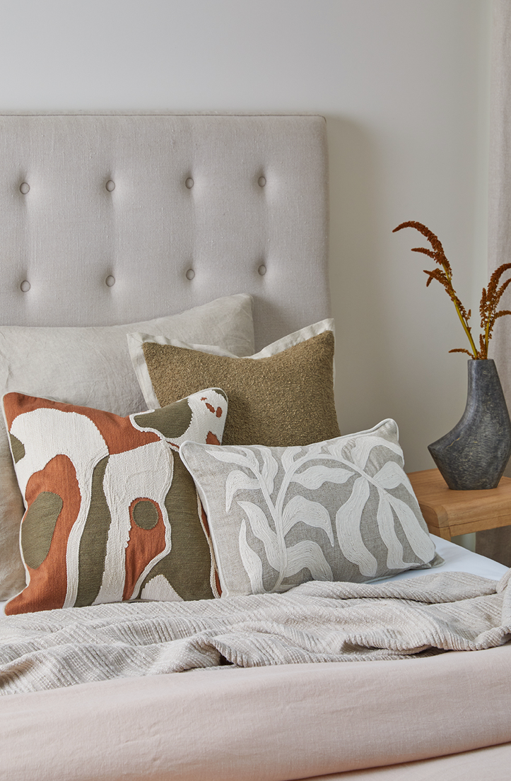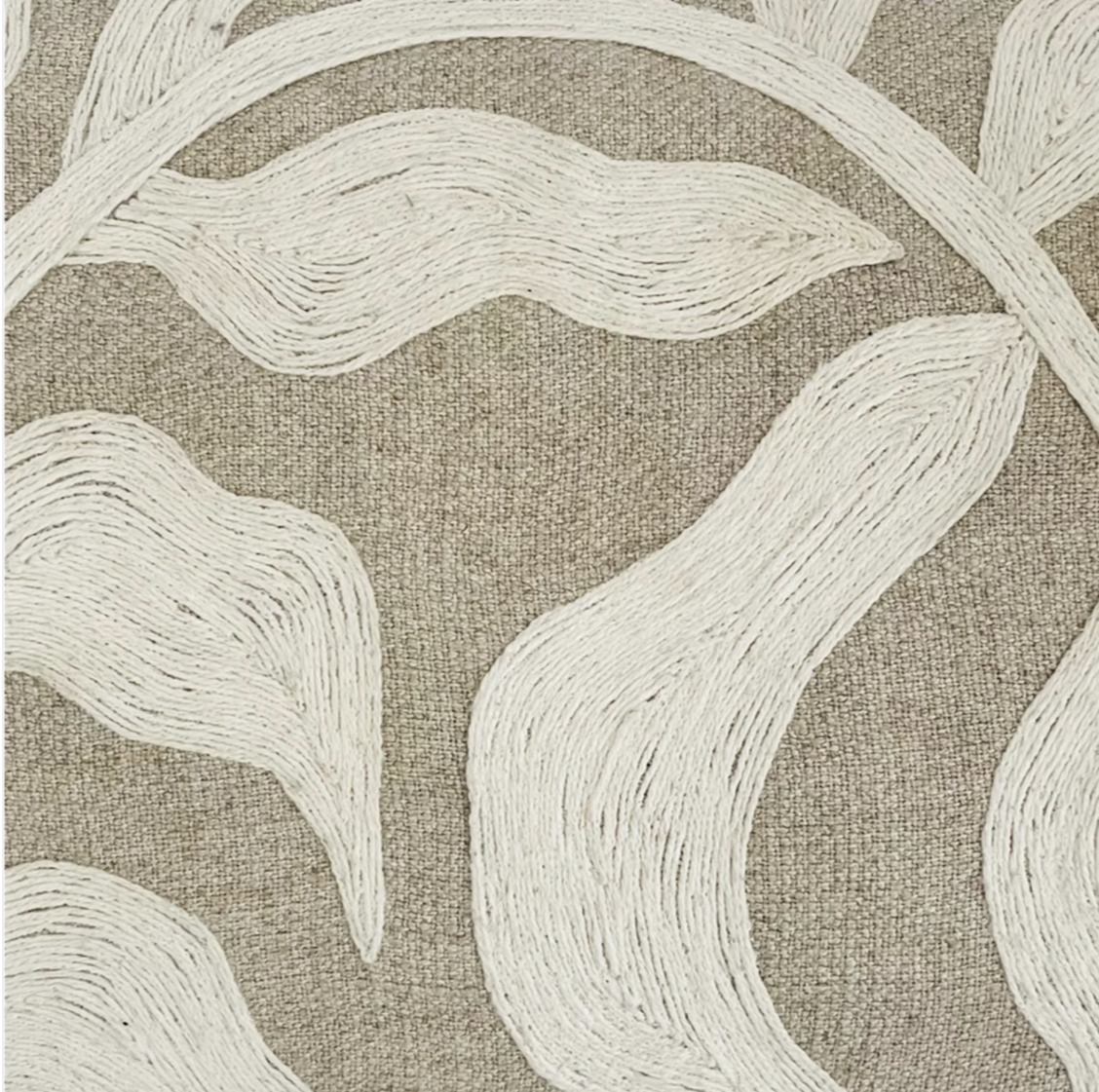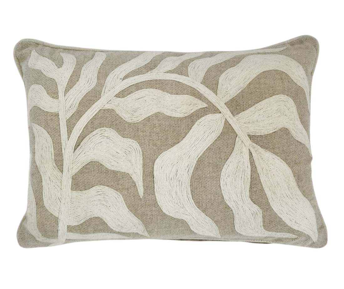 Delicately crafted, the Aurella Cushion in ivory enhances your space with timeless elegance. Its hand-embroidered floral design in soft neutral hues adds subtle texture and artisanal refinement. Measuring 35x55cm and filled with feathers, this cushion offers a plush, inviting comfort, making it an exquisite addition to any serene, layered interior.