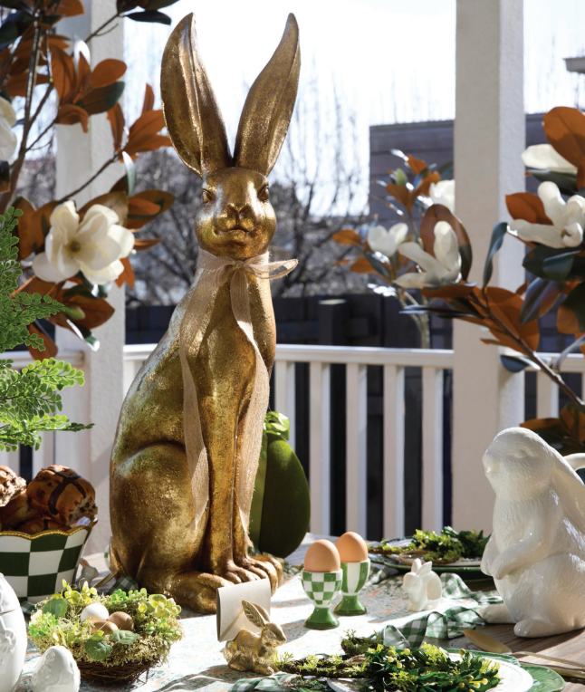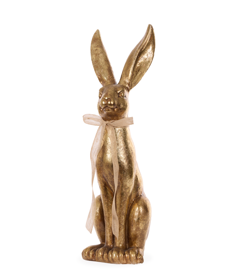 Gilded Hares with bow are a luxe look to your Easter decor. They are large in size at 80.5cm and 81.5cm so sure to stand out wherever they are placed. Buy one of each or buy them both for a grand look. A: 81.5CM B:80.0CM C: 36.5CM