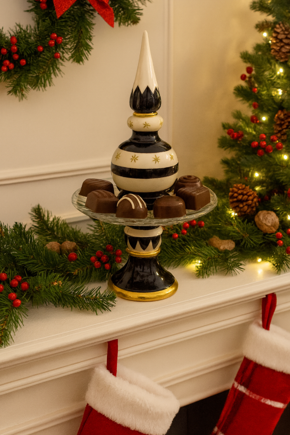 How could you not complete your monochrome Christmas without our Finial Candy Plate. Measuring 24cm diameter and 43cm tall this is the perfect way to display your Christmas treats.