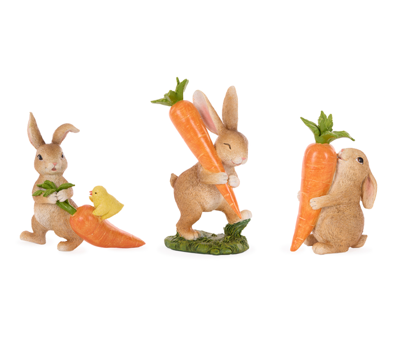 Introducing 3 Bunnies With Carrots, irresistibly cute resin decorations perfect for adding cuteness into your home. These charming bunnies all collecting carrots. Choose from three unique designs and collect them all, or pick your favourite to treasure solo. Mix, match, and enjoy building your own little bunny family.