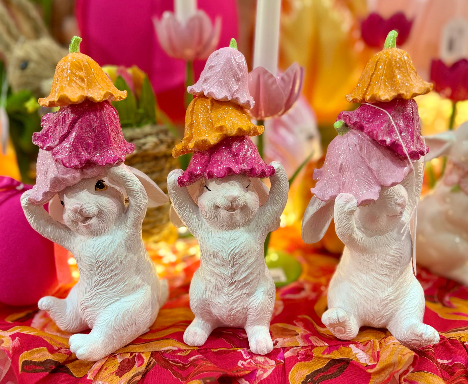 Aren't these just he cutest Easter decor set you have ever seen? Each character is different and measures 8.8 X 10 X 22.3 CM. Made from durable resin, these cuties will bring a smile to anyone's face this Easter.