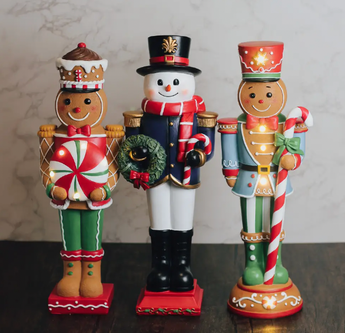 Introducing the Peppermint Lolly Gingerbread Man, a festive addition to your holiday decor! This 40cm tall gingerbread man is adorned with peppermint candy and gingerbread features and features LED lights that bring a warm glow to any room. Batteries not included.