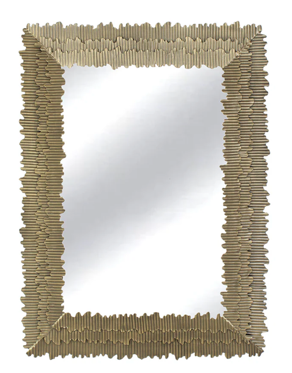 Introducing the new rectangle Allegra metal mirror, featuring a triple-layered textured brass frame.