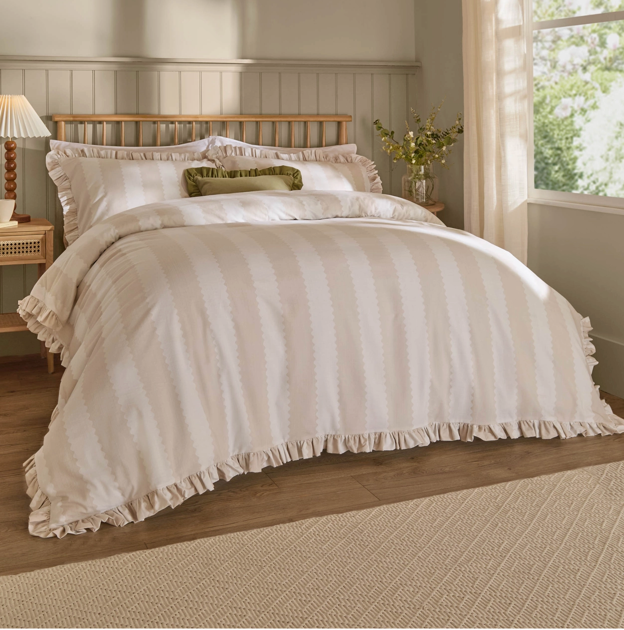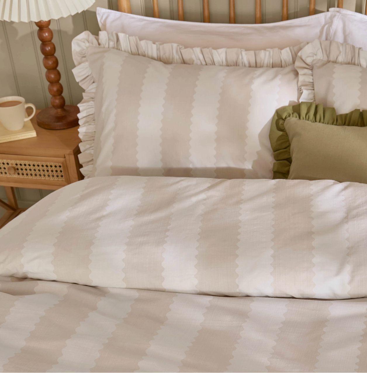 Wrap yourself in understated elegance with the Bridie Striped Doona Cover, featuring 2 natural coloured stripes that infuse your bedroom with warmth and character. Crafted from a comfortable 180 thread count cotton fabric, this versatile cover delivers style.