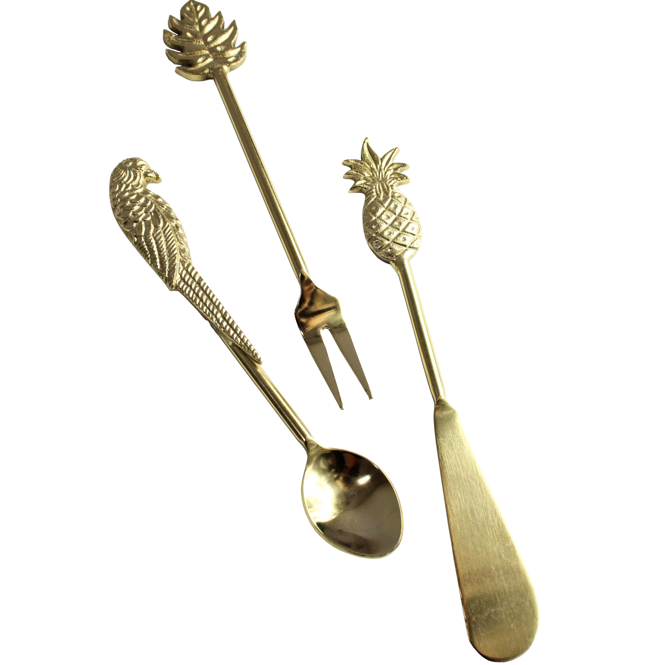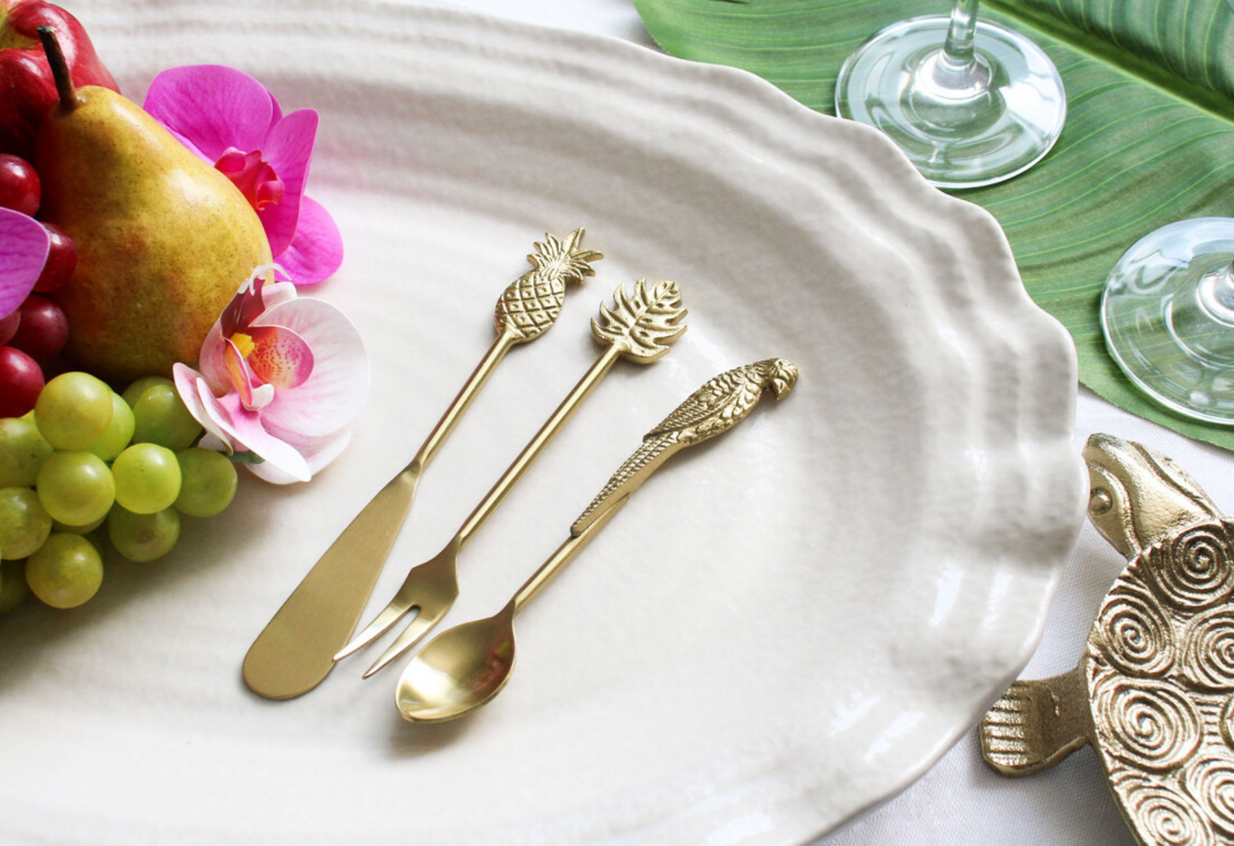 Charcuterie Bahamas Set of 3 is handcrafted from aluminium and designed to make entertaining both stylish and practical. The set includes three elegant utensils, each featuring a unique Bahamian-inspired design - a pineapple, a palm leaf, and a tropical bird - adding a touch of exotic flair to any table. Perfect for hosting, gatherings and appreciate distinctive serveware that’s both functional and decorative.